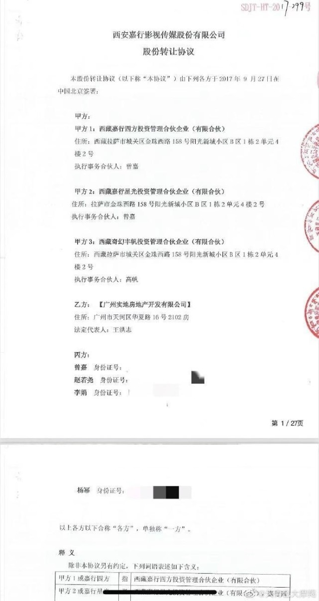 最后,在股转协议和工作室注销承诺书上的签字,让@杨幂 用了本名个人签署,她将因此成为欠债责任人,即使离开嘉行也会面临债务问题,她是否又被贵方坑了?