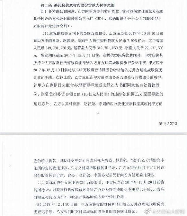 @嘉行传媒 曾嘉 赵若尧 请尽快归还我方9000万欠款及1870万元利息!2017年,贵我双方达成委贷以及股权收购协议。按贵方要求,我方先行以借款形式借款个人,贵方应同时进行等额的转让股权质押,并在之后向我方转让该质押股权,转让完成后借款抵消股转款。2017年11月17日,首笔款9000万已打至贵方指定账户。但时至今日,贵方既没有进行股权质押,也未将嘉行传媒股权转让我方,且拒绝返还借款!