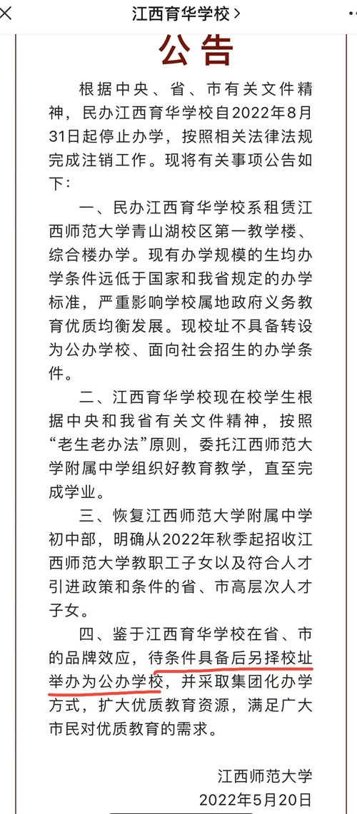 有如此骄人成绩的学校停办,的确令人遗憾。不过公告最后一条也提到:待条件具备后,另择校址举办为公办学校! 南昌未来哪个区域将有幸迎来新公历育华到来呢?你能猜到吗?