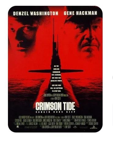 电影上映在1995年,这次应该是看第二遍啦,此时的感悟,战争离普通人真的很近,核战争离普通人同样如此,电影讲述的是一艘战略性核潜艇,在受到某国叛军攻击,同时在通讯设备故障,无法跟国家取得联系的情况下,到底应该是发射核导弹,还是恢复通讯设备后再次确认是否发射核导弹的故事!一旦发射核导弹,后果可想而知,战争从来就没有胜者。