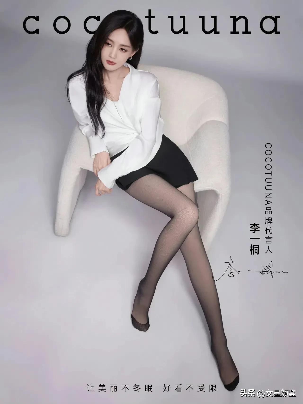 当清纯的李一桐穿上超薄黑色连脚丝袜还是很清纯。