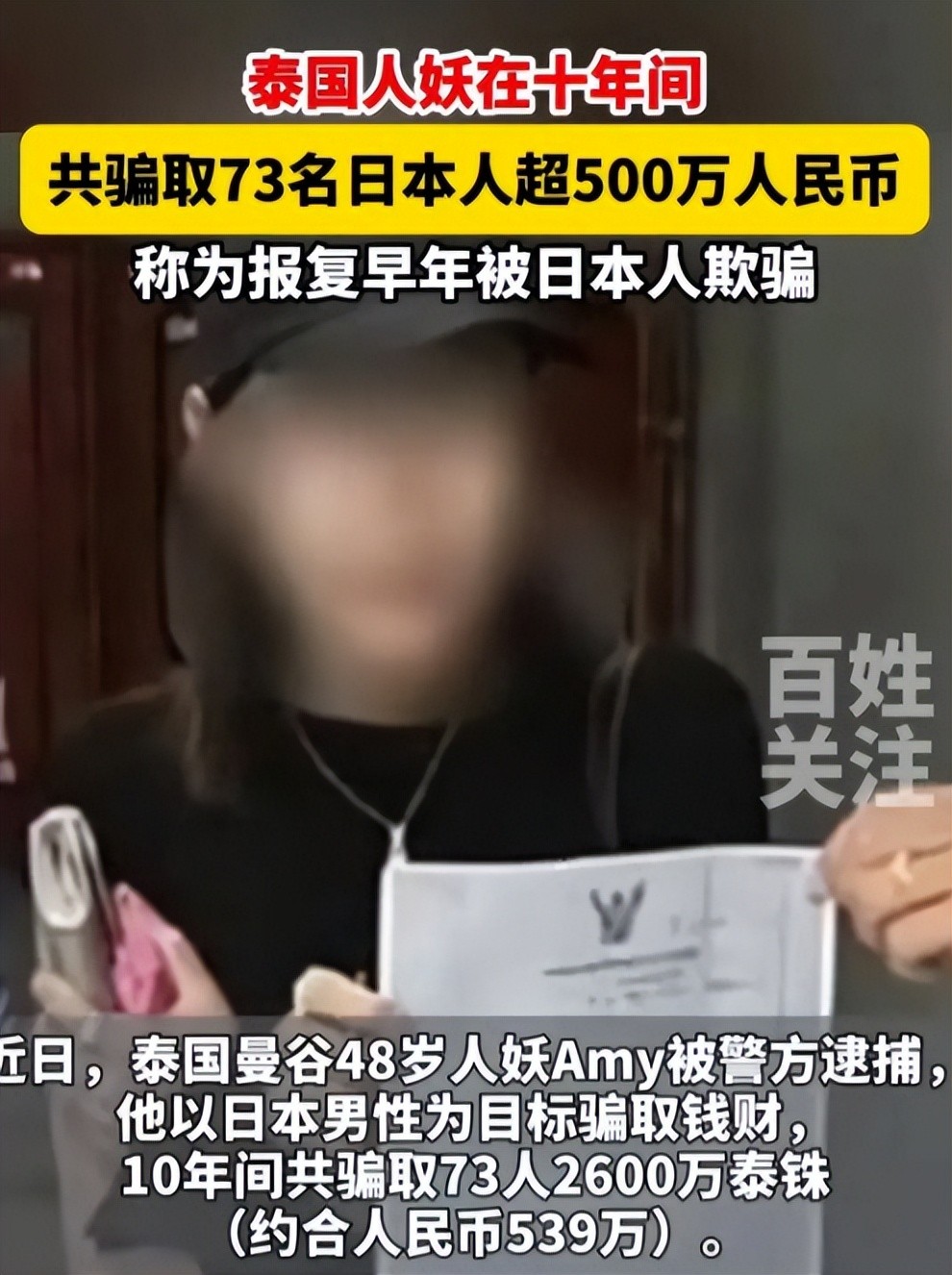 在十年间,他陆陆续续欺骗了73名日本人,涉及金额高达2600万泰铢(折合人民币共539万)。