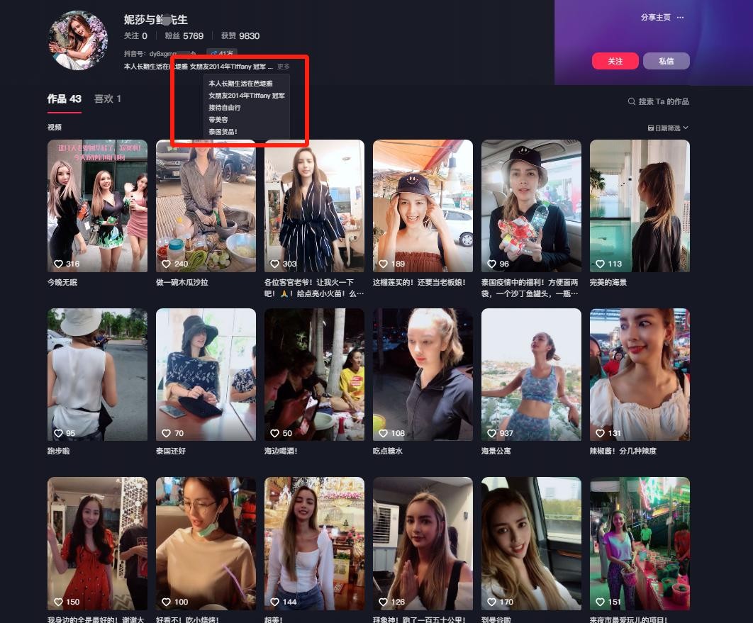 抖音作者暹罗某先生的视频信息