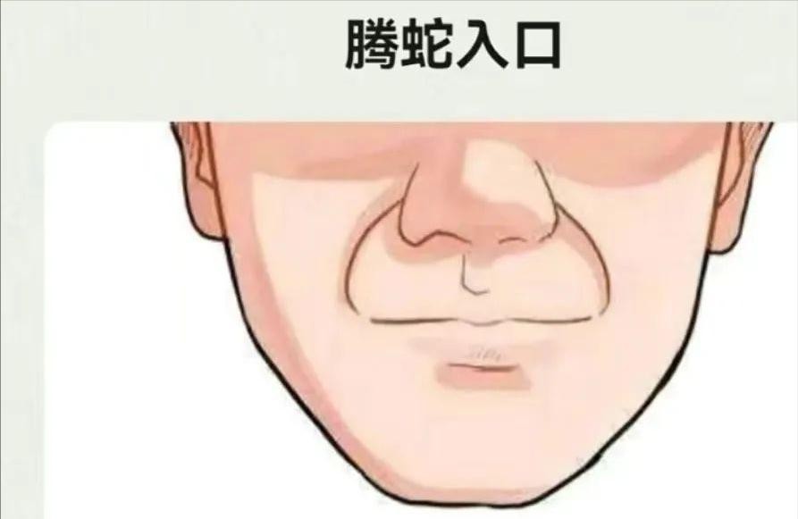 “腾蛇入口”是相学中的一种面相特征,指的是嘴角两边的法令纹弯曲如蛇,缠绕入嘴角。在相学上,这被认为是一种不利的面相,有“腾蛇入口,主饿死”的说法,代表易得肠胃消化系统的疾病,在古代也被称为“饿死之相”。
