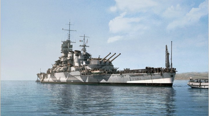 三号舰罗马号1938年9月18日开工,1940年6月9日下水,1942年6月14日建成。1943年被美国飞机炸伤,1943年9月9日被德国轰炸机用制导炸弹“弗里茨”-X攻击,2号炮塔弹药库起火殉爆,整个炮塔被炸飞,舰体段成两截沉没,1254人阵亡(包括波刚明尼上将)。罗马号只有短短的5个月的生命,完成了20次航行,共计航行2492海里。