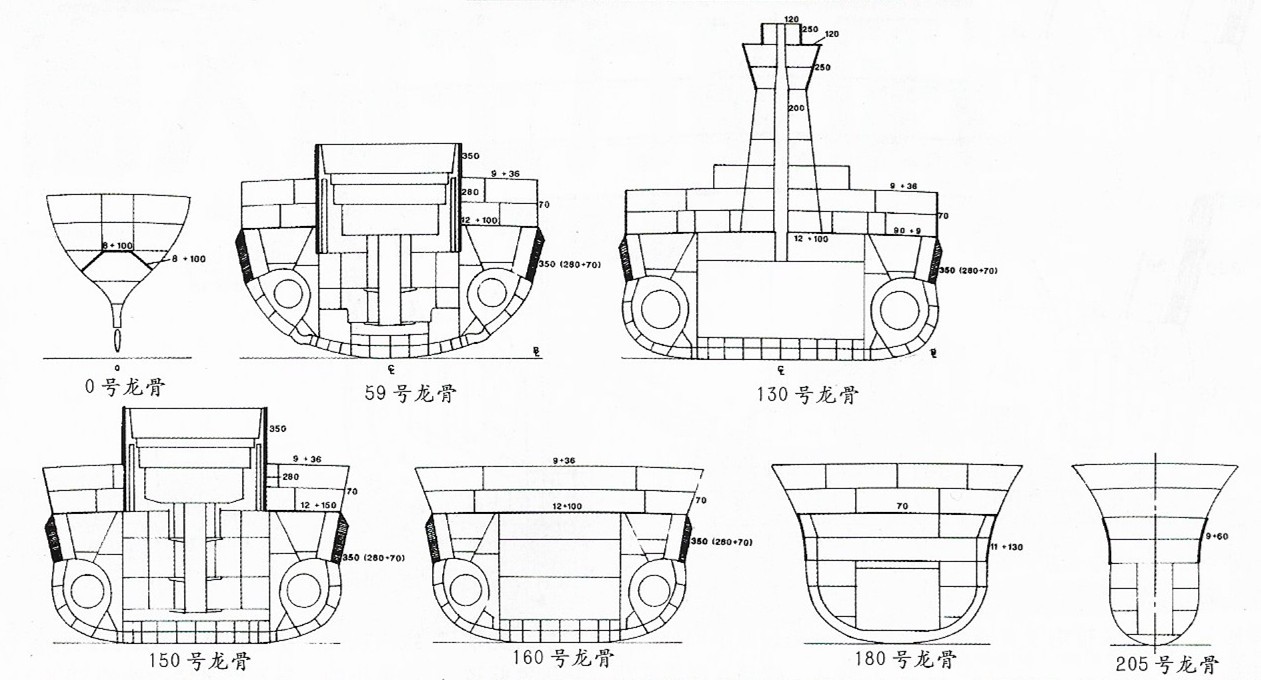 维内托级不同肋位的剖视图