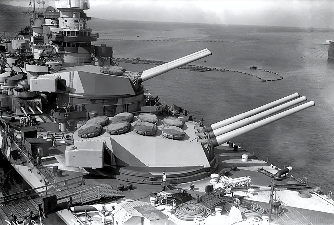 三联装主炮塔重1595吨,比当时一些驱逐舰都重。副炮为4座三联装的152mm炮塔。