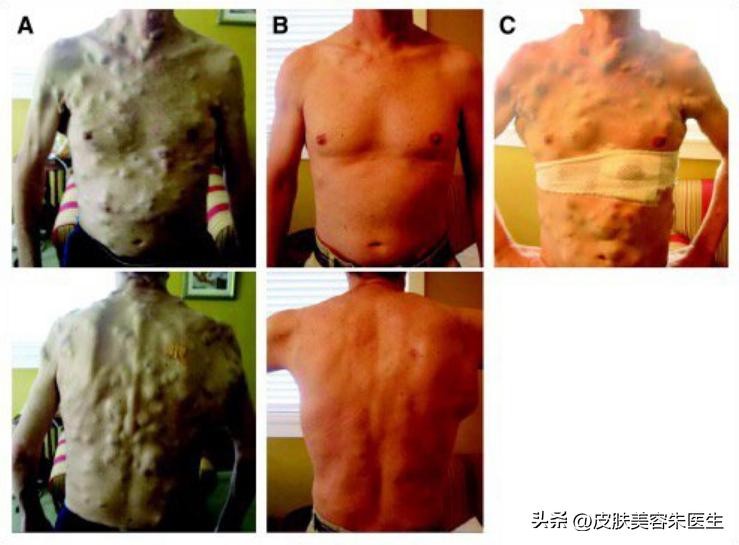 大家可以在照片2的“图A”一列中看到,患者的身体被黑色素瘤覆盖,并破坏了他的肌肉,消耗了他身体的大部分能量,因此他看起来非常苗条。