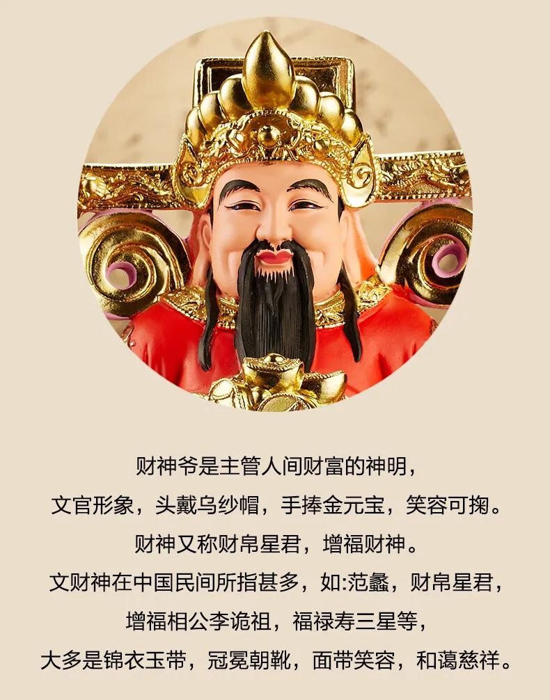 再次,从形象特征来看,文财神和武财神也有着明显的区别。文财神通常被描绘为文质彬彬、温和善良的形象,他们穿着华丽的衣服,手持财富的象征,如金元宝、聚宝盆等。武财神则通常被描绘为威武雄壮、勇猛果敢的形象,他们手持武器,身穿战袍,充满了战斗的气息。 最后,从信仰体系来看,文财神和武财神在中国传统信仰中也有着不同的地位和作用。文财神通常被视为财富的象征,被认为是财富的创造者和管理者。因此,在中国传统信仰中,文财神通常被视为商业、金融和文化领域的守护神。武财神则通常被视为财富的守护者,能够保佑人们的财富和平安。因此,在中国传统信仰中,武财神通常被视为军事、政治和司法领域的守护神。