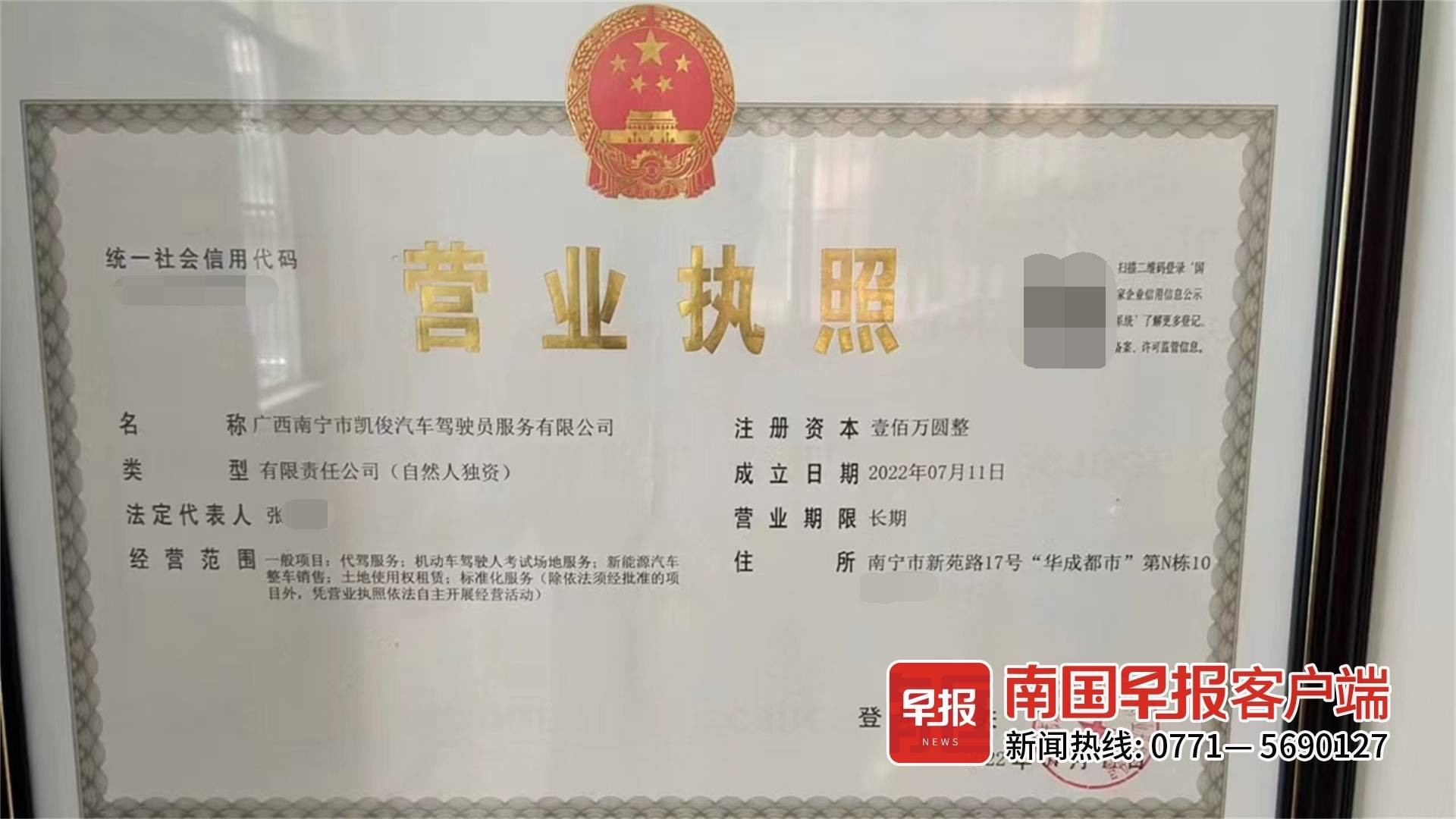 近日,有读者向南国早报客户端反映,因轻信他人在抖音发布的“驾考包过”广告,多名外地学员与南宁市凯俊驾驶员服务有限公司签订协议书,并预交5000元至上万元不等费用。学员交费后,发现该公司无培训资质,要求退钱未果。