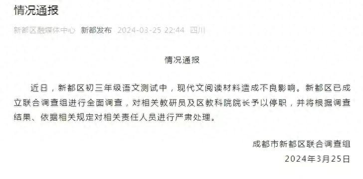 曝初三语文测试问题!教育官员集体停职,谁来对话学生成长?
