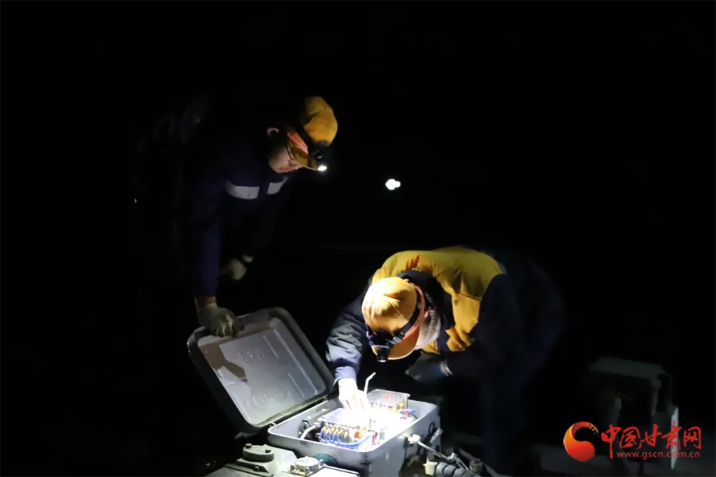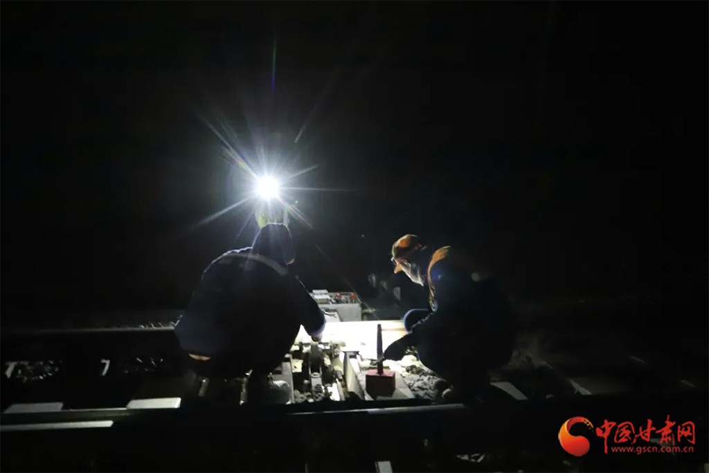 近日,嘉峪关电务段阿克塞信号车间阿克塞检修工区利用“天窗”对当金山隧道内道岔进行日常养护、检查调整。