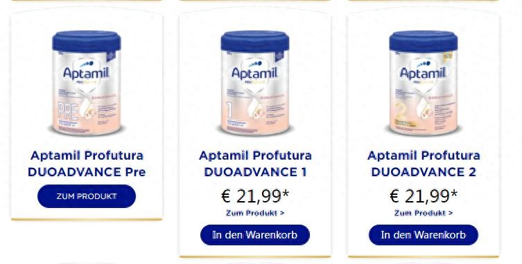 价格:德国爱他美白金版超市售价在21.99欧元,普通版是16.99欧元,两者相差5欧,大概是人民币35-40元。
