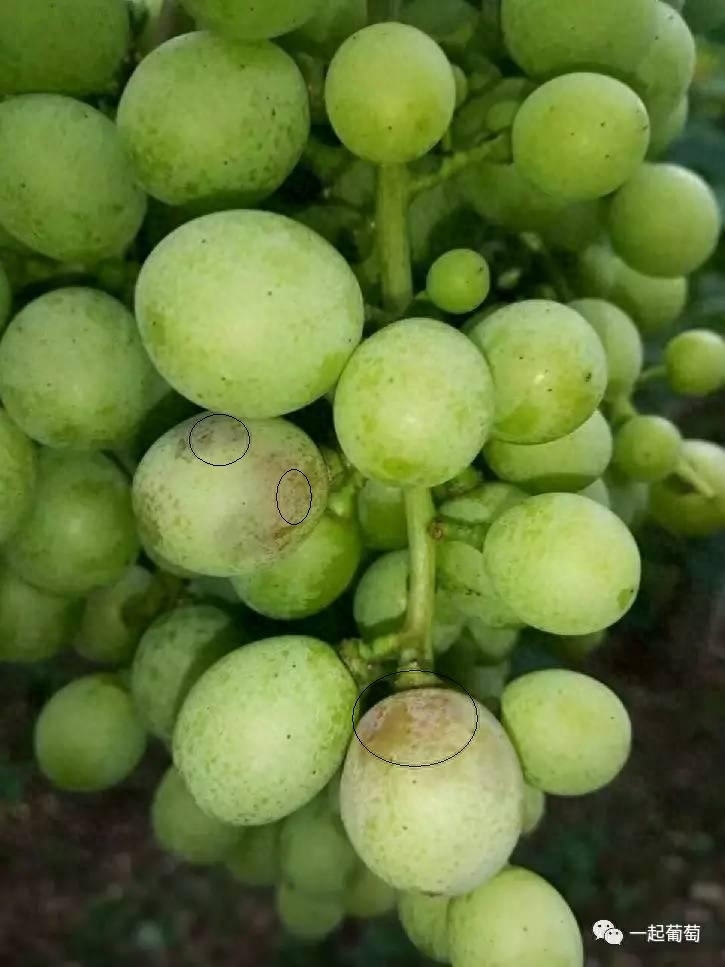 日灼在上部,汽灼在下部,日灼一个点,汽灼半个粒。分清楚也没用,能防住就好。
