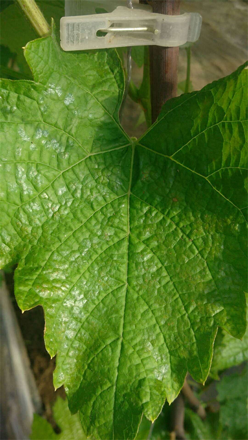 合理枝蔓管理,促使叶片提前老化。留枝不宜过多,过密,及时绑缚。多花前集中摘心之后,果穗周围的叉会长得很快,这是靠近果穗或者果穗以下的叉必须全部抹干净,防治叉上的嫩叶感染霜霉直接上果。