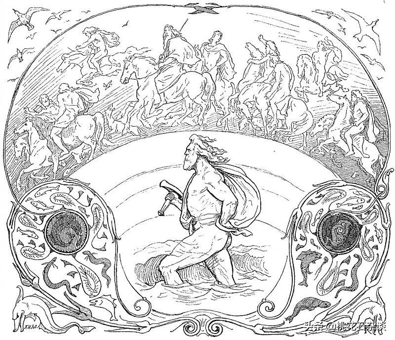 但你以为尤弥尔是北欧众神之祖?并不是!北欧神话的世界观在这里发生了一个很有意思的转折。后来尤弥尔身上变出了智慧巨人密米尔和女巨人贝斯特拉,他们后来形成了霜巨人家族。而神族的祖先则来自被大母牛不断舔舐的寒冰之中,名叫布利。后来布利又生下了后代包尔,而包尔和女巨人贝斯特拉情投意合,一起生下了三个孩子,分别是奥丁、威利和菲。但他们出生之后,很快和巨人产生不合,并发生战争,最后神族把巨人的祖先(也可以算他们自己的外祖)尤弥尔给杀死,剩下的巨人逃亡。而他们则拿尤弥尔的头与身体做成了大地和天空,把他的脑髓做成云彩,用他的血液、骨髓和毛发做成海洋、山脉和树木。之后,诸神又用梣(chén)树做成男人,用榆树做成女人。而大家熟悉的雷神索尔和前面提到过的战神提尔则都是奥丁的儿子。