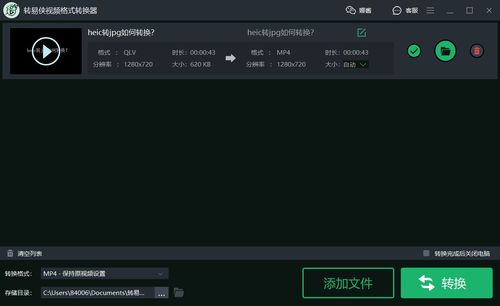 然后,在软件界面中选择输出格式为MP4,并设置输出文件夹,即将转换完成的MP4视频保存到指定位置。