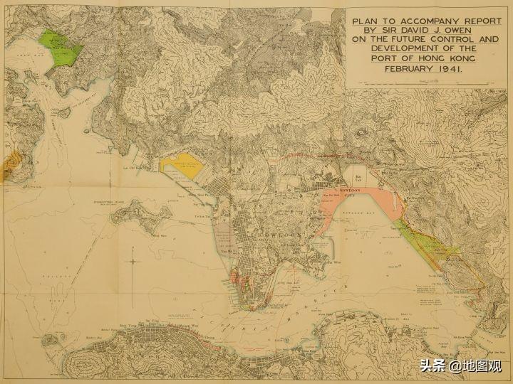 1941年:香港港口发展规划图,当时已有开发观塘和荃湾新市镇的计划,可惜等来到的是日本人。