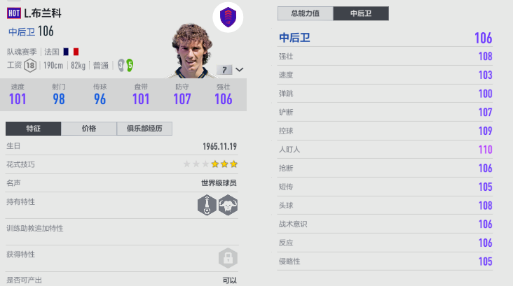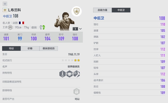 布兰科是法兰西的功勋中卫,也曾经身披红色战袍征战英超。他在FIFA ONLINE 4里出卡比较早,从NHD开始玩家就有机会使用到,赛季卡种类繁多。根据现在的强度,比较推荐的赛季有ICON、EBS、LH和HOT四个赛季,其中ICON赛季是他的巅峰卡。