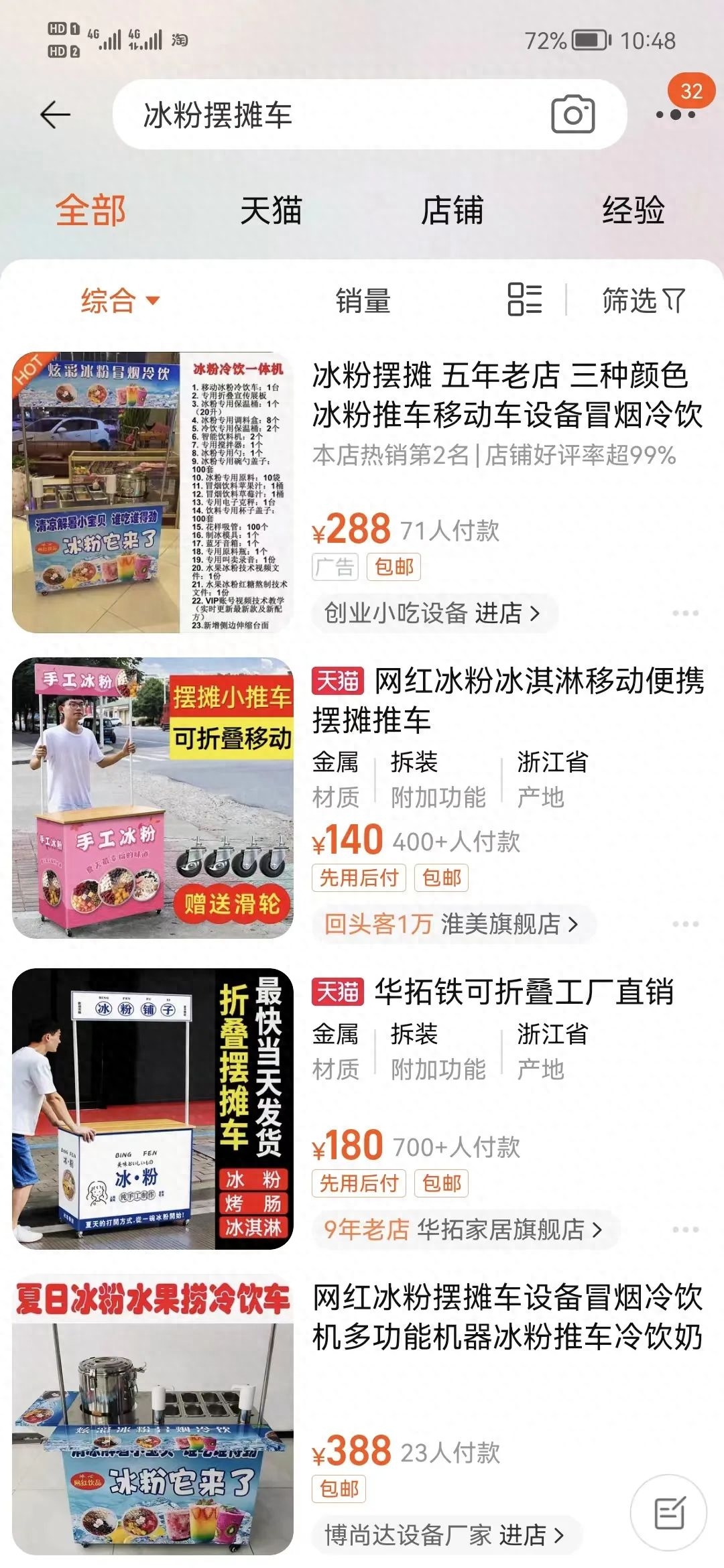 GO妹看到小姐姐的冰粉摊设备正好是淘宝页推荐的那种,问了下她前期装备的花费,加上材料等实际可不止几百块呢。