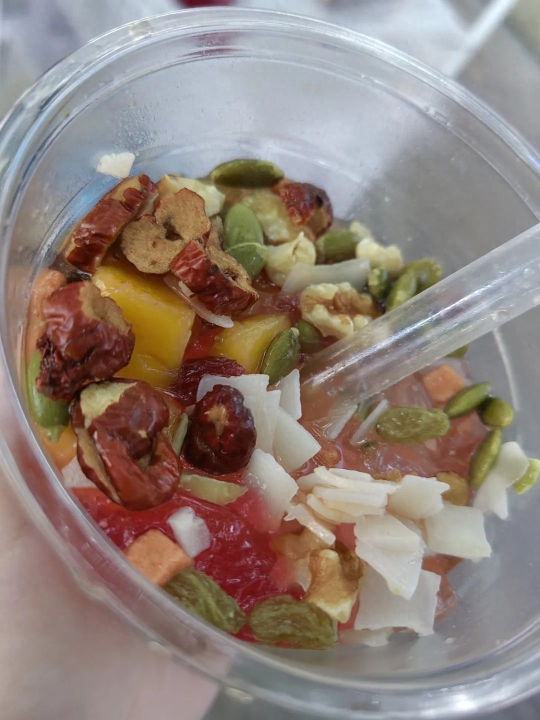 小姐姐的用料肉眼可见是那种挺好的,碗也挺大的,还有新鲜水果,坚果碎粒,与普通冰粉5元一碗作比较较后,初步定价的大份8元,小份6元,加群还可以减1元。