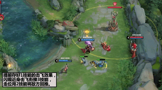 另外,关于2技能的使用我们也可以参照关羽的操作思路,从侧翼绕后将敌人击退到队友跟前;