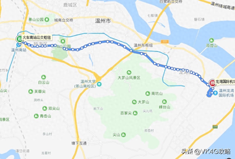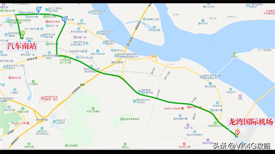 行驶线路:火车南站→瓯海大道→温州机场,全程29公里,行车约需50分钟。