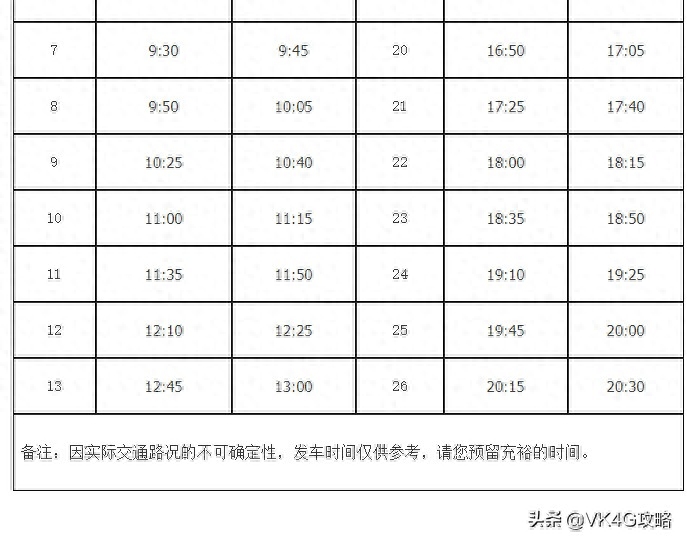 备注:因实际交通路况的不可确定性,发车时间仅供参考,请您预留充裕的时间。