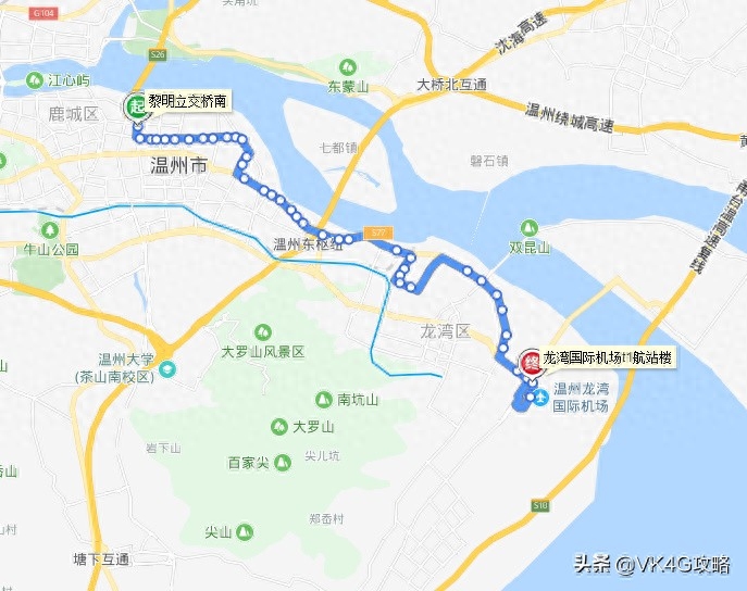 行驶路线:洞头新城客运站→元觉活水潭→霓屿→灵昆→温州机场,全程55公里,行程约需1小时。