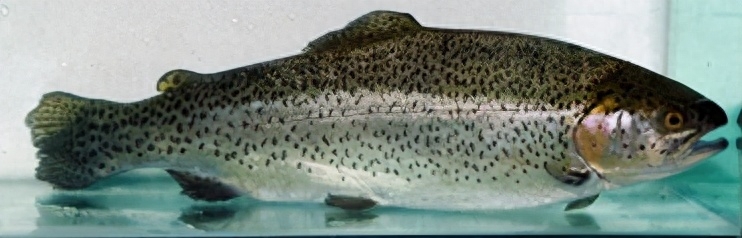 虹鳟、金鳟其实差不多的,都属于太平洋鲑(大马哈鱼)属,目前养殖很多,比上面的三文鱼便宜,也不好养,经常用来冒充三文鱼给你做生鱼片吃。