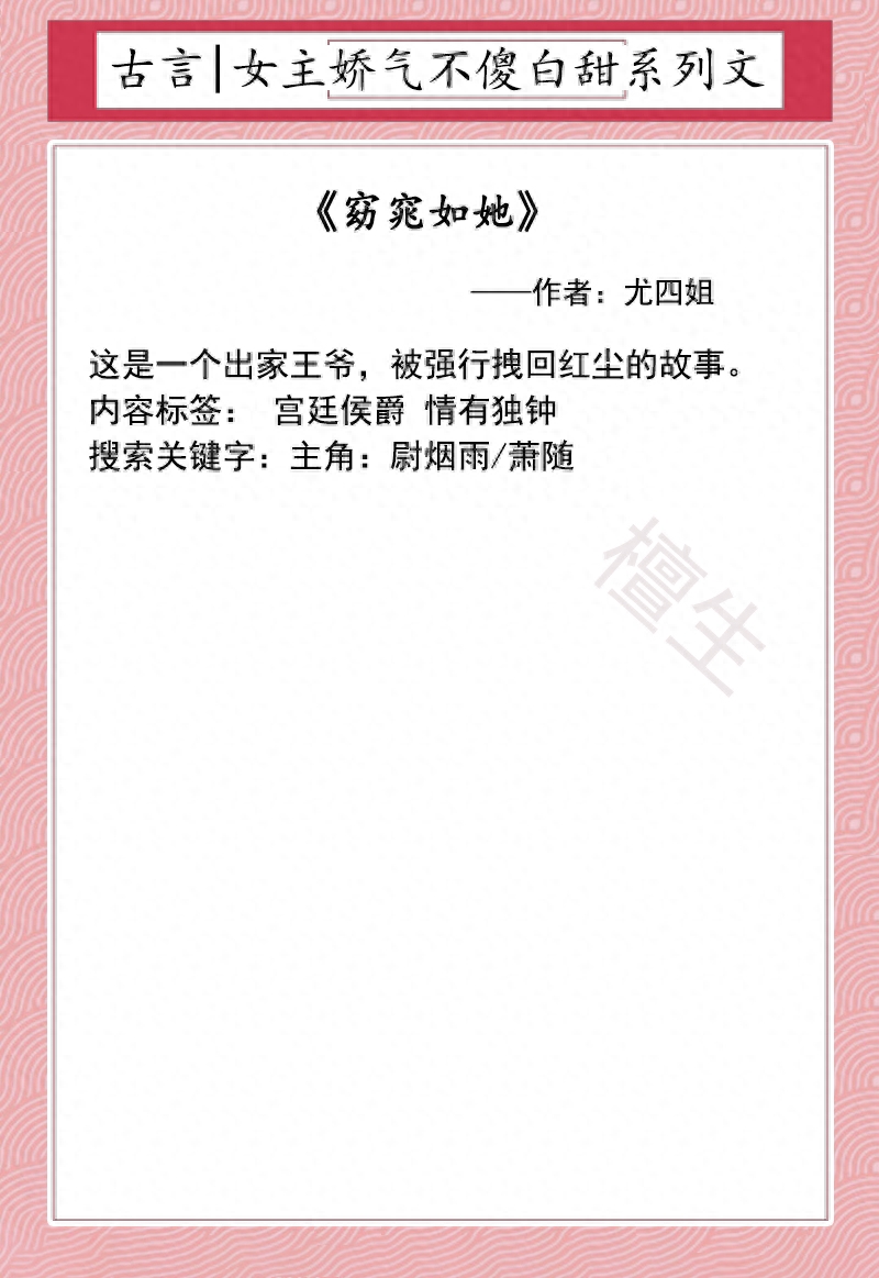 这个作者作品的质量一向很能打。这篇文秉承她一贯亲妈作派,笔下的男女主人设苏而不尬,剧情甜而不腻,真的巨解压,值得你点开!