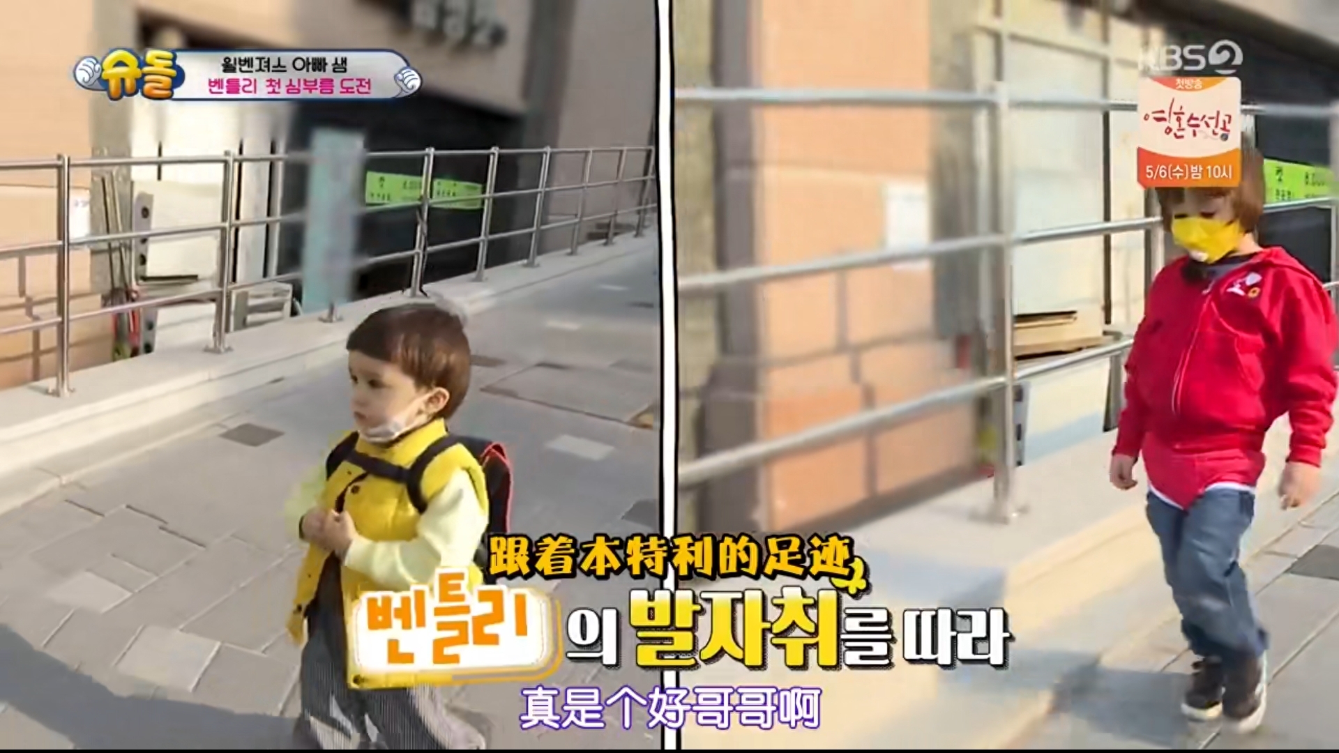 小威担心弟弟,一直在后面悄悄跟着,暗中保护弟弟,迷路了就拿软糖给本本指路,眯着了就躲在暗地里大喊一声,“买虾”提醒弟弟,太贴心了吧,威廉啊!