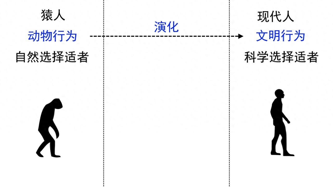 此二式子概括出不同时期,人类进化上的差别。但是它们都遵循进化论的核心思想,最适者生存。