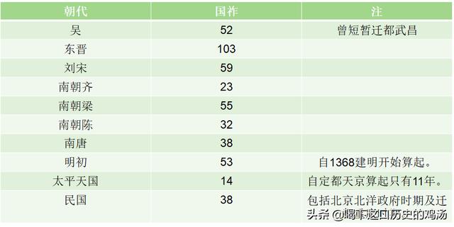 上图截取的是以南京(或者曾以南京)为都城的主要政权国祚(如南明弘光政权这种被”秒灭“的政权就不计入了),确实国祚都不算长。