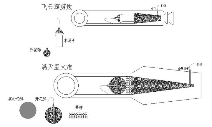古代火炮的发射原理也很简单,在炮膛内放满炸药,然后牵引一根引线出来,点燃引线,爆炸产生推力,把炮膛内的炮弹推送出去,仅此而已了。