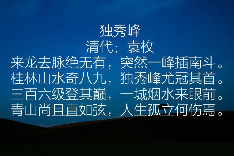 桂林山水奇八九,独秀峰尤冠其首。