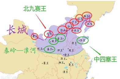 明朝共十三个塞王,除了北方边塞的“九大塞王”,还有中部的“四大塞王”,即秦岭淮河一代的亲王。这些藩王的作用为防止内患,如果发生内乱,这些藩部可以在发生内乱时平定叛乱,保卫都城南京。