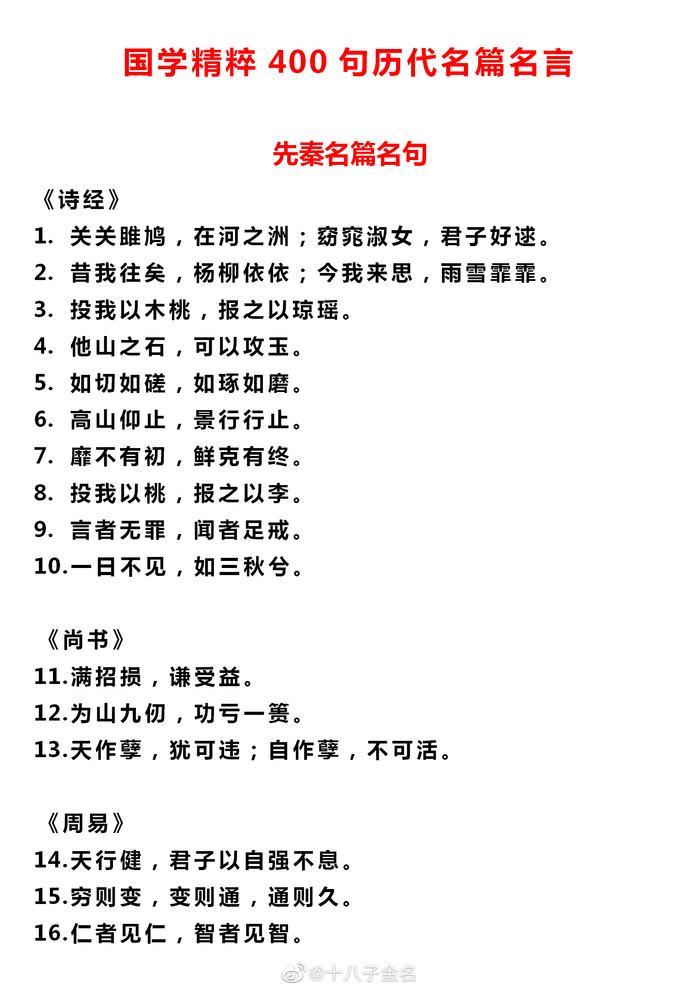 中国古代400句国学精粹名言,按朝代分类整理出来了……