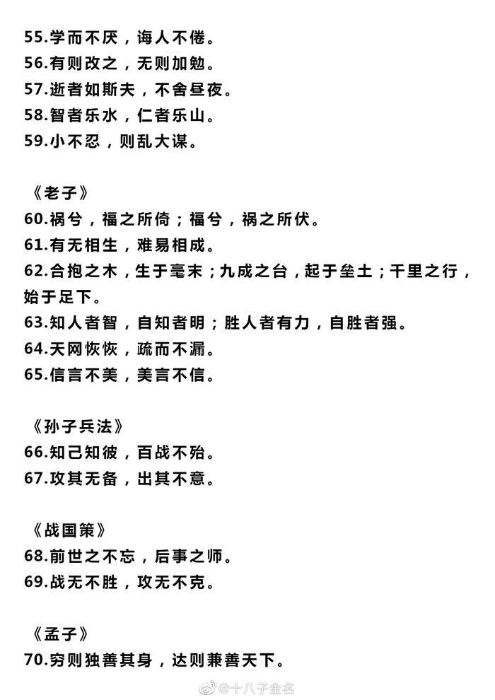 中国古代400句国学精粹名言,按朝代分类整理出来了,凝聚了中华传统文化的精髓,比如天作孽,犹可违,自作孽,不可活;祸兮,福之所倚,福兮,祸之所伏;家有孩子的,保存下来,为了提高孩子文化素养也要多看看,最好能够倒背如流,等到以后用到的时候,就能脱口而出了。#突然觉得读书真有用的瞬间#
