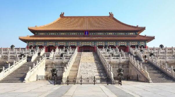 宫殿是沿着一条南北向中轴线排列,并向两旁展开,南北取直,左右对称。这条中轴线不仅贯穿在紫禁城内,而且南达永定门,北到鼓楼、钟楼,贯穿了整个城市,气魄宏伟,规划严整,极为壮观。