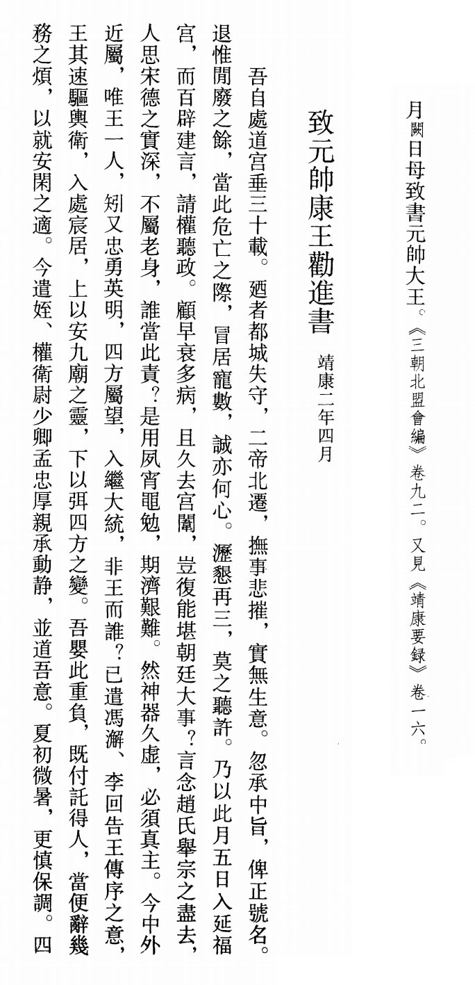 孟氏给赵构的《致元帅康王劝进书》