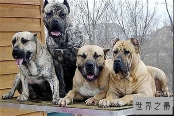 西班牙加纳利犬,这种狗狗在上个世界60年代得时候几乎是濒临灭绝,但是在美国的专业博士的保护下,它们逐渐生存下来,这种狗狗是由斗犬演化而来的,所以它们的战斗力一直都很强。