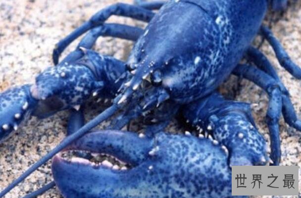 蓝色龙虾是美洲龙虾基因突变产生的结果,这种蓝色龙虾在甲壳类动物中出现的概率是二百万分之一,原因是摄入了过量的某种蛋白质,而这种蛋白质形成了蓝色化合物,从而在外壳上呈现了亮蓝色。