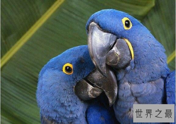 这种鹦鹉是鹦鹉家族中个头最大的成员,它们鲜艳的蓝色羽毛特别的引人注目,这种鹦鹉最早被发现在巴西,可因人类的猎捕和自然环境的破坏,使它们的数量大大减少,这种珍稀的生物正面临严重的生存危机。