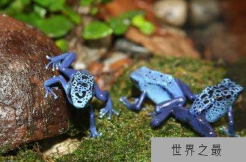 毒镖蛙是一种体色非常鲜艳漂亮的青蛙,它们虽然有这部小巧可爱的外表,但却是世界上最毒的动物之一,它们的背上能够分泌出一种可以致人死亡的剧毒神经毒素。
