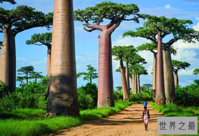 详细介绍:猴面包树主要分布在非洲和北美地区,这种树的树干非常奇特,和喝水的瓶子很像,而且里面能够储存大量的水分,这也是它“长寿”的秘诀,猴面包树的平均寿命在千年以上。