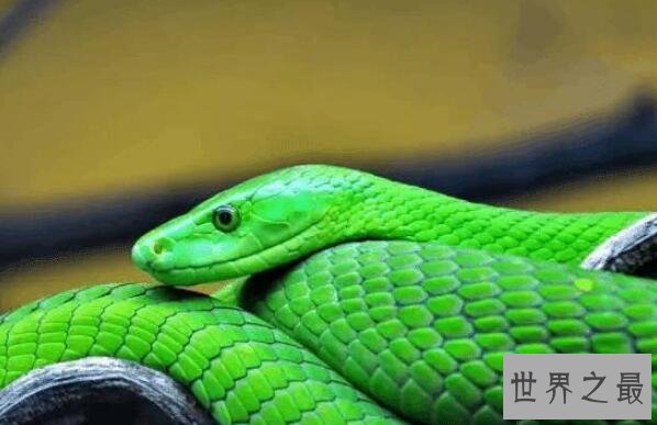 绿曼巴蛇产于非洲,浑身碧绿,像一根竹子,身体非常灵活,被认为是爬行速度最快的蛇之一,它们比黑曼巴蛇攻击性更弱一些,但毒性仍很致命。