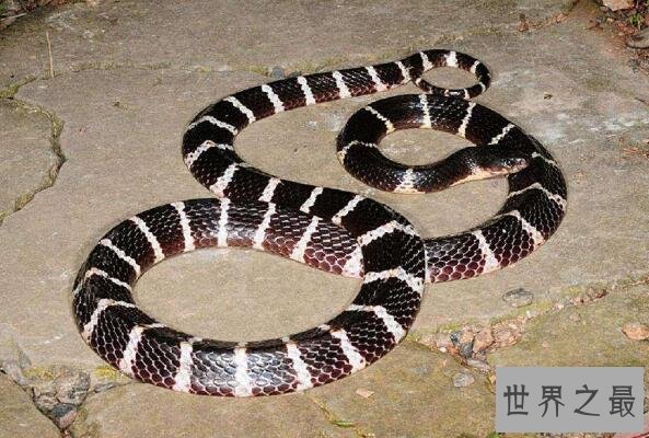银环蛇也是眼镜蛇科的蛇类,它们的身体白环和黑环相间,毒性极强,被认为是陆地第四大毒蛇,如果被咬数小时后仍没有治疗,就会因呼吸麻痹而死亡。