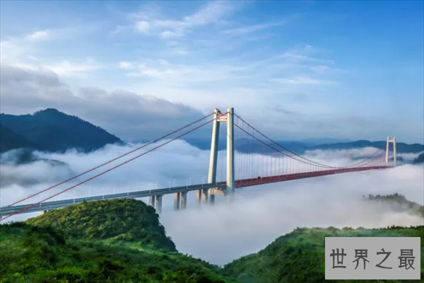 鸭池河大桥是毕节市与贵阳市高速通道的大型桥梁,于2014年正式动工建设,在2016年建造完成并开始通车,全长1240米,桥高434米。 贵州瓮安清水河特大桥是贵阳到瓮安高速公路的重要组成部分,连接了贵阳开阳县和黔南苗族自治州瓮安县,于2013年正式开工建设,于2015年正式通车,全长2174.1米,桥高406米。 海吉焦峡谷管线桥位于巴布亚新几内亚,是东南马南达油田重要组成部分,也是世界上最高的油管吊桥之一,桥高393米,虽然不是专门为人们通行建造的,但它能支撑起数百吨的重要。 巴特阿鲁大桥是为了纪念墨西哥独立200周年而建造的一座大型桥梁,于2008年动工,在2012年正式通车,全长1124米,桥高403.4米,是全球十大最高的桥梁之一。 六广河特大桥是连接息烽县和黔西县的一座大型桥梁,东西跨度较大,于2014年动工,在2017年正式通车,全长1280米,桥高375米,曾还获得贵州省“黄果树杯”优质工程奖和李春奖等荣誉。 坝陵河特大桥位于坝陵河,连接了贵州安顺市东西两岸的高速通道,运用了多个国内外先进技术,也创造了多个第一,于2005年动工建设,在2009年正式通车运营,全长2237米,桥高370米。