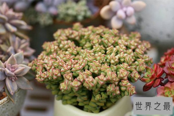 乙女心也是最受欢迎十大多肉品种之一,原产地墨西哥瓦哈卡州,绿中带红,显得非常“萌”,但不能进行长时间的照射,会让整株乙女心变成水。